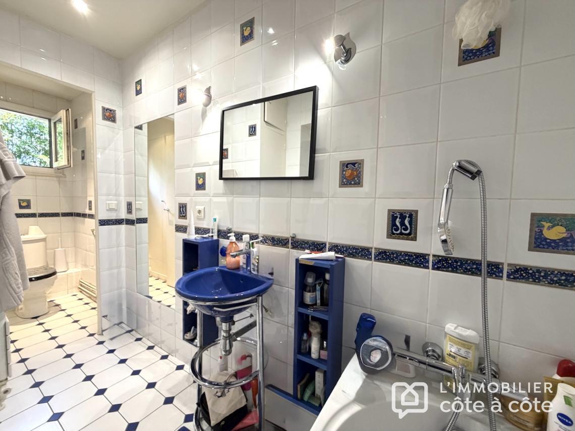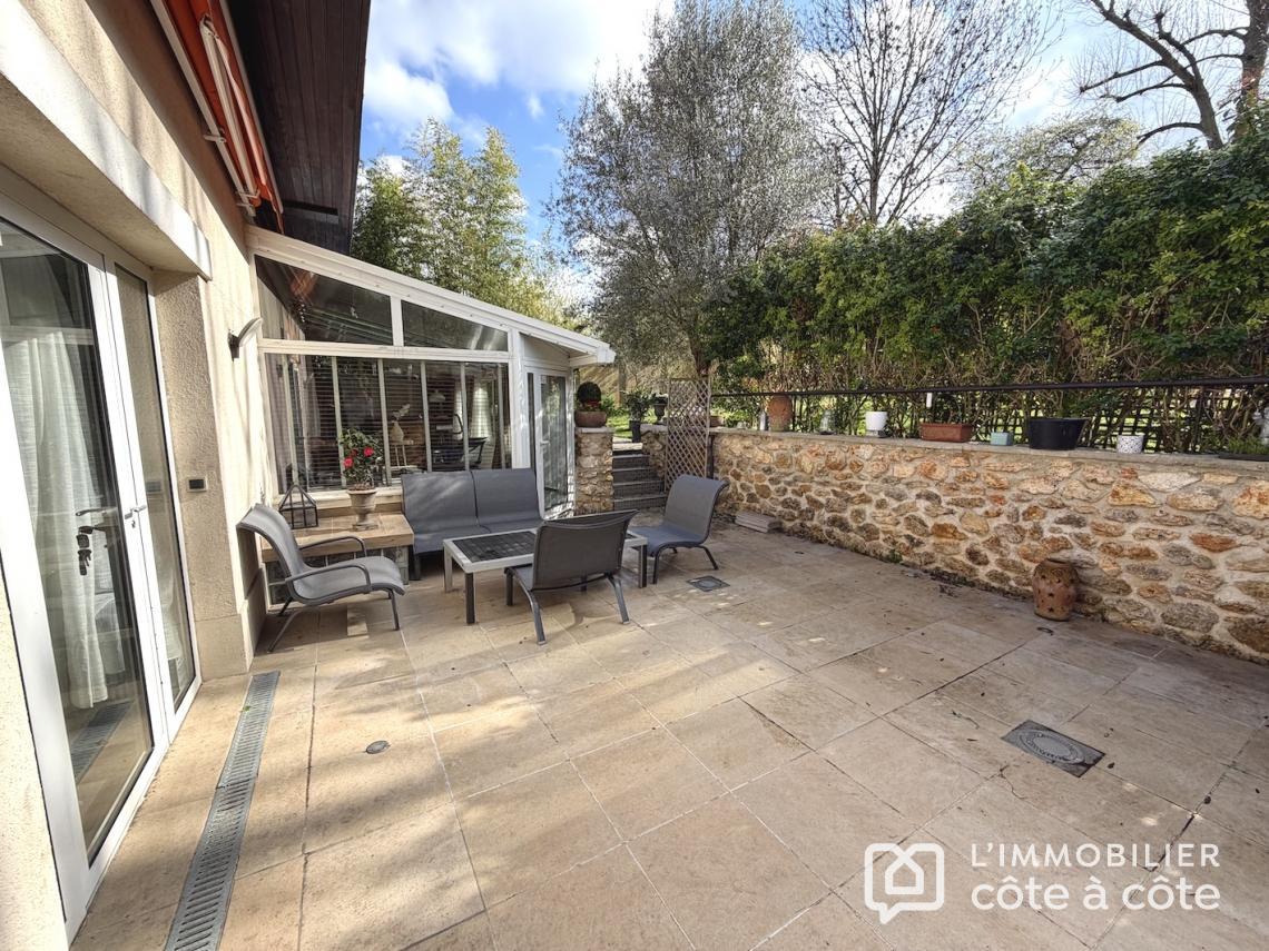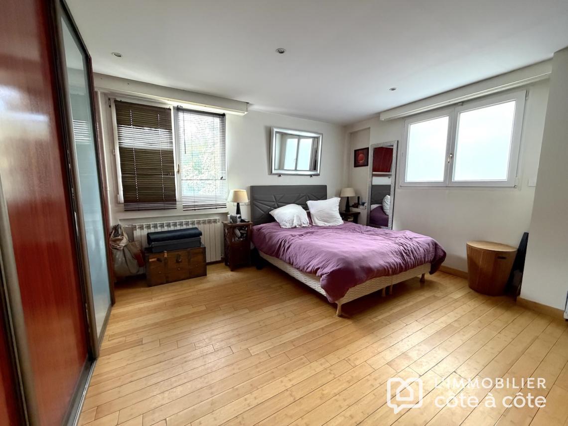 Au calme, en fond de parcelle, une terrasse magnifiquement exposée vous accueille de plain-pied sur un espace de vie de plus de 90 m2, triple exposition avec accès à une seconde terrasse carrelée, composé d’une cuisine ouverte avec son comptoir dinatoire, un salon, une salle à manger/billard et une véranda entourée de verdure, lien entre les deux terrasses. Toujours de plain-pied, deux grandes chambres, une salle d’eau et des toilettes. Vous trouverez deux autres chambres, toujours de belle taille, chacune à son propre niveau. À l’étage, un ancien studio indépendant a été transformé en une chambre avec salle de bains et wc privatifs et en souplex, une chambre, exposée Sud-Ouest,