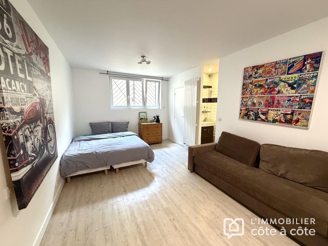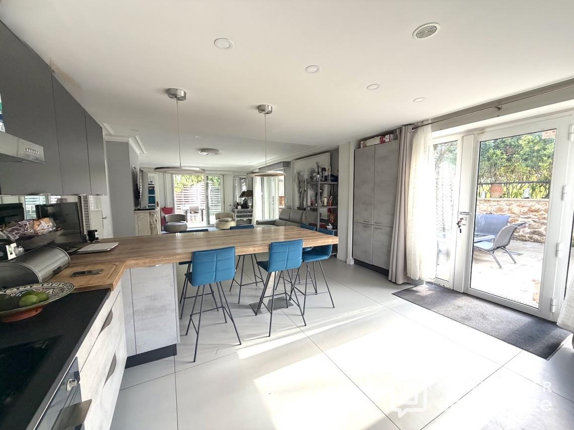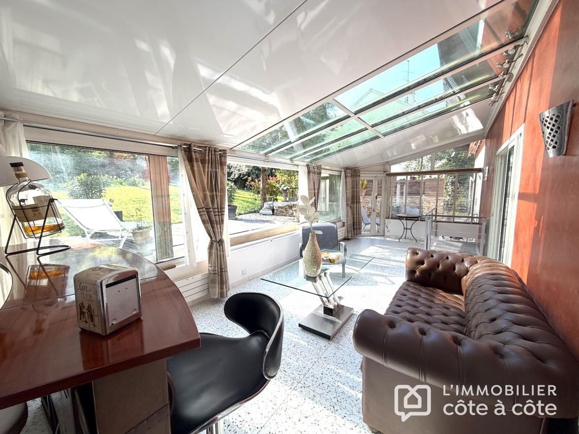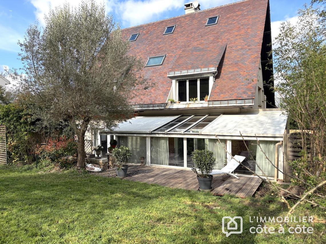 Au calme, en fond de parcelle, une terrasse magnifiquement exposée vous accueille de plain-pied sur un espace de vie de plus de 90 m2, triple exposition avec accès à une seconde terrasse carrelée, composé d’une cuisine ouverte avec son comptoir dinatoire, un salon, une salle à manger/billard et une véranda entourée de verdure, lien entre les deux terrasses. Toujours de plain-pied, deux grandes chambres, une salle d’eau et des toilettes. Vous trouverez deux autres chambres, toujours de belle taille, chacune à son propre niveau. À l’étage, un ancien studio indépendant a été transformé en une chambre avec salle de bains et wc privatifs et en souplex, une chambre, exposée Sud-Ouest,