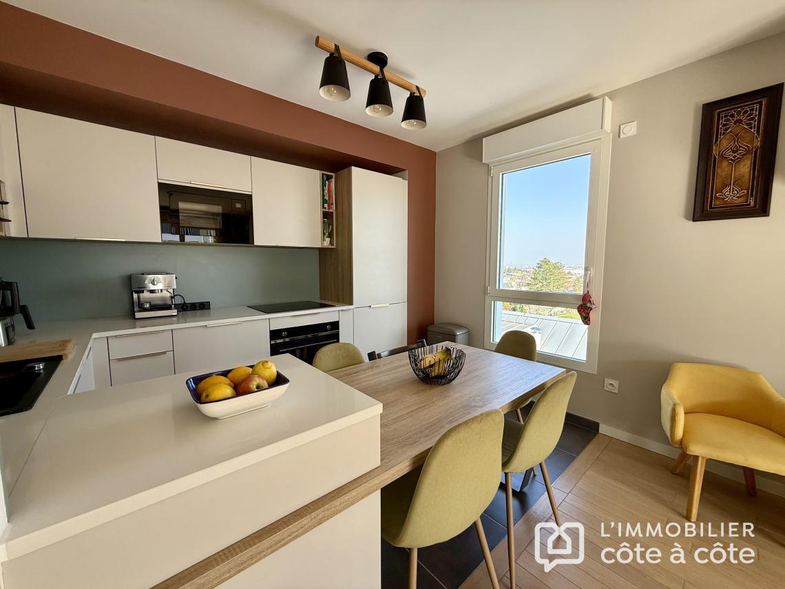 La pièce de vie, chaleureuse et conviviale, s’ouvre sur une cuisine aménagée et profite d’une belle luminosité grâce à de larges baies vitrées. Celles-ci prolongent naturellement l’espace vers un agréable balcon de 13 m², offrant une vue dégagée. Une cave ainsi qu’une place de stationnement en sous-sol complètent ce bien.